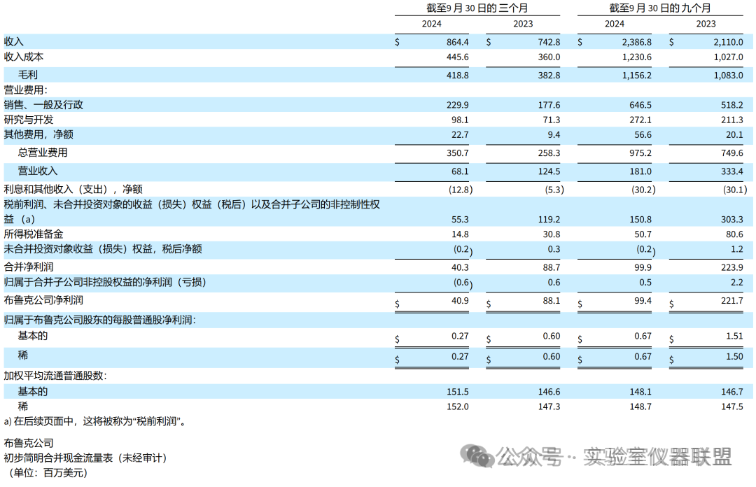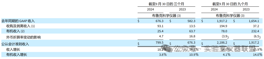 根據(jù)報(bào)告,布魯克 2024 年第三季度的收入為 8.644 億美元,與 2023 年第三季度的 7.428 億美元相比增長 16.4%。2024 年第三季度,收入同比有機(jī)增長 3.1%,固定匯率 (CER) 收入增長 15.7%。收購收入增長 12.5%,外幣折算產(chǎn)生 0.7% 的有利影響。