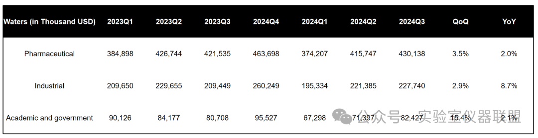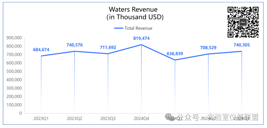 Waters2024Q3財(cái)報(bào)顯示,公司本季度營收7.40億美元,超過此前指引,同比增長4%。凈利潤1.615億美元,同比大增20%。值得注意的是,根據(jù)Waters財(cái)報(bào),2024Q1/Q2期營收均同比下滑,尤其是Q1更是大幅下降。