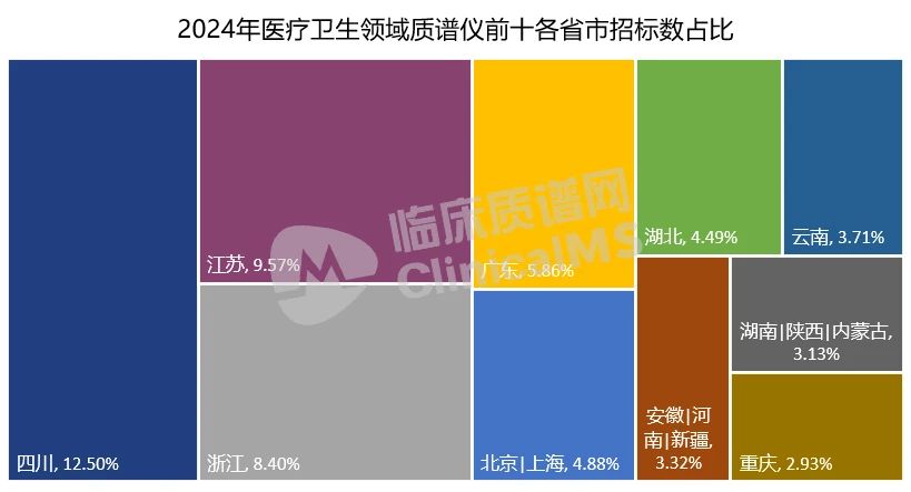 臨床質(zhì)譜網(wǎng)根據(jù)公開招投標(biāo)數(shù)據(jù)統(tǒng)計(jì),2024年醫(yī)療衛(wèi)生領(lǐng)域通過招投標(biāo)采購質(zhì)譜儀器約500余臺(tái),中標(biāo)總金額近10億,通過招投標(biāo)發(fā)布采購需求的單位有近400家。