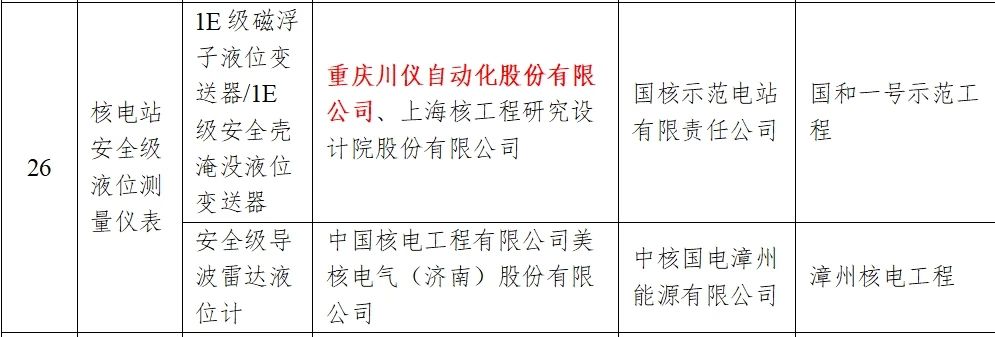重慶川儀聯(lián)合上海核工程研究設(shè)計院開發(fā)的1E級磁浮子液位變送器和安全殼淹沒液位變送器,應(yīng)用于國和一號示范工程。