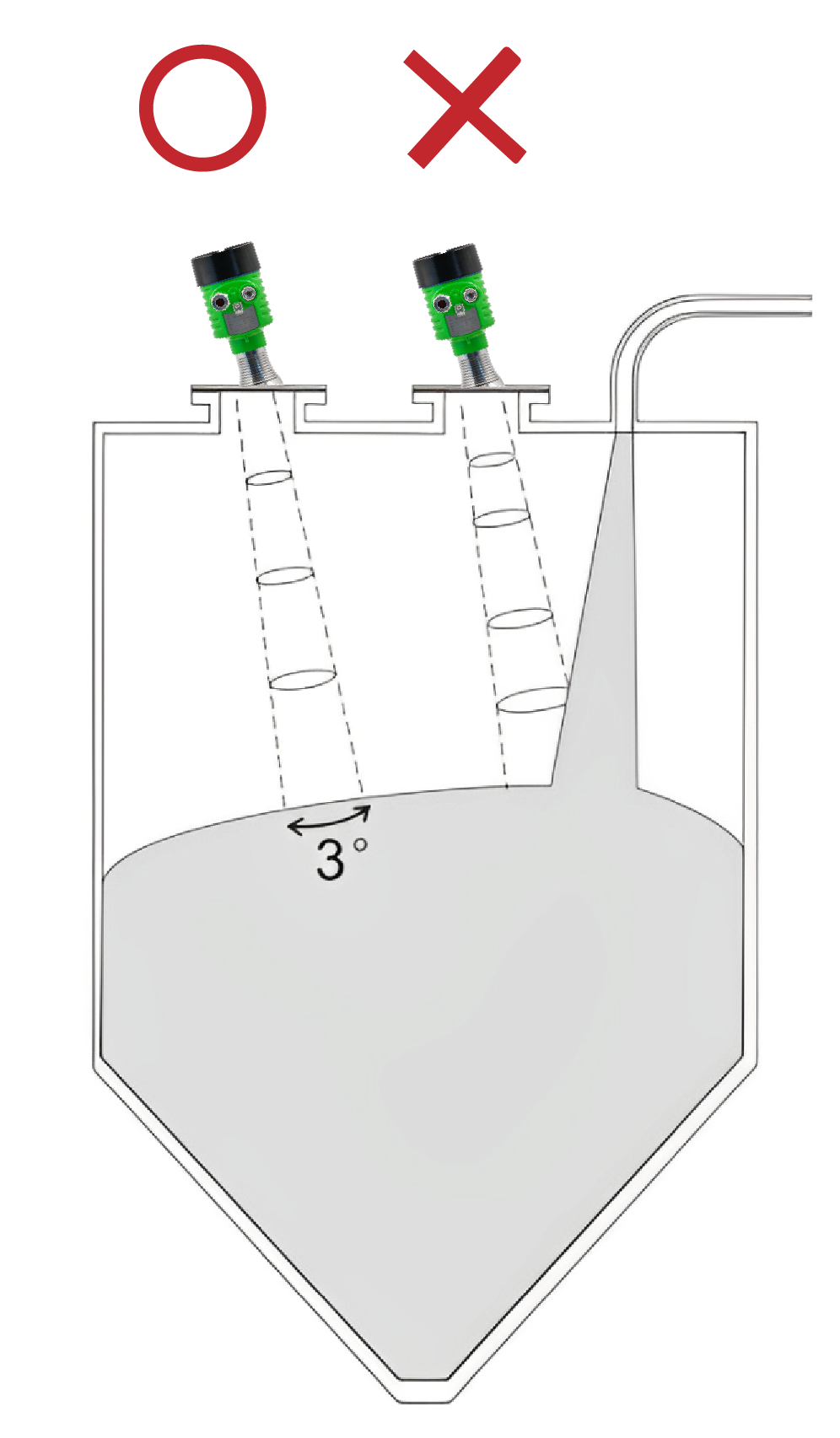 安裝時躲干擾 —— 離進料口、罐壁遠點兒,留足盲區;