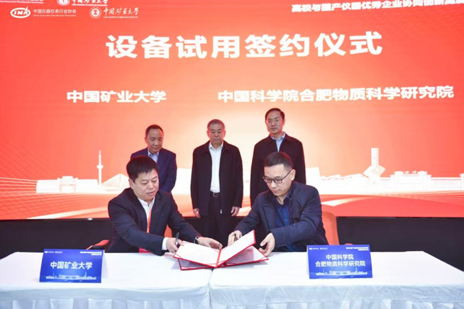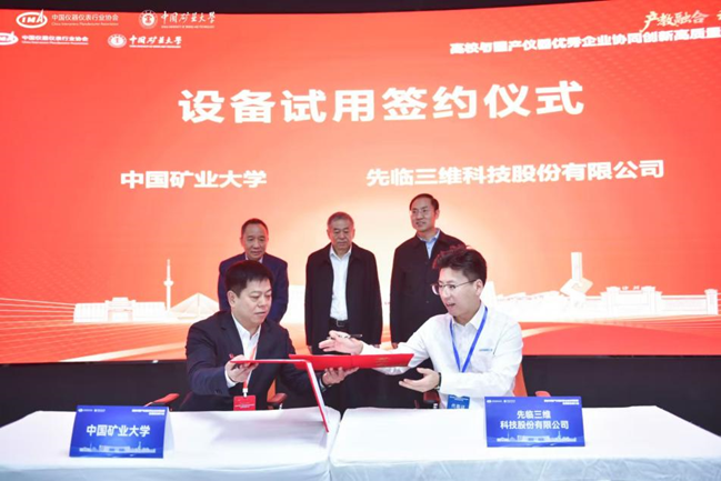 此次活動促成了寧波永新光學股份有限公司,先臨三維科技股份有限公司、成都玖錦科技有限公司、中國科學院合肥物資科學研究院4家企業(yè)與礦大簽訂設備試用協(xié)議。工信部裝備工業(yè)一司原一級巡視員苗長興、協(xié)會秘書長李躍光、礦大副書記李江濤共同見簽,礦大實驗室與設備管理處處長吳祝武代表礦大與企業(yè)簽約,通過此次設備試用協(xié)議的簽訂及合作平臺的搭建,開啟了校企儀器應用與技術合作的嶄新篇章,為國產儀器的市場化應用注入了新的動力。