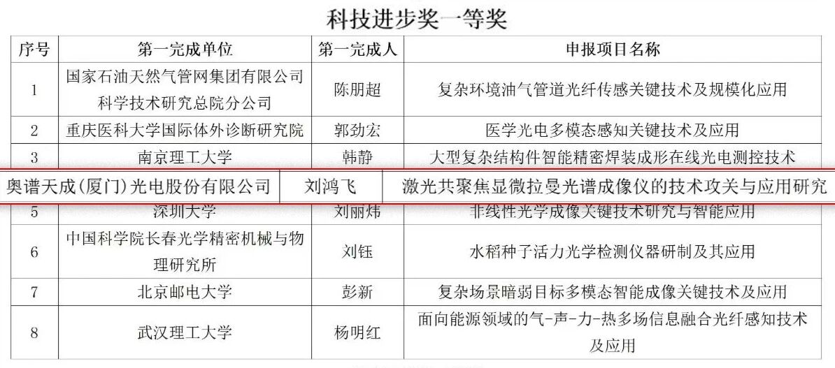 近日,奧譜天成憑借《激光共聚焦顯微拉曼光譜成像儀的技術攻關與應用研究》,榮獲“中國光學工程學會科學技術獎”科技進步獎一等獎。