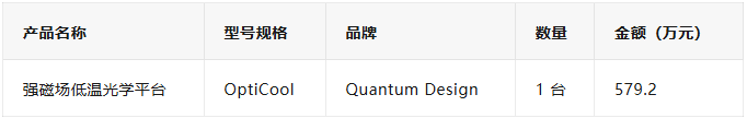 2、強(qiáng)磁場(chǎng)低溫光學(xué)平臺(tái)2025年11月26日強(qiáng)磁場(chǎng)低溫光學(xué)平臺(tái)采購(gòu)項(xiàng)目通過(guò)驗(yàn)收,合同金額:579.2萬(wàn)元。