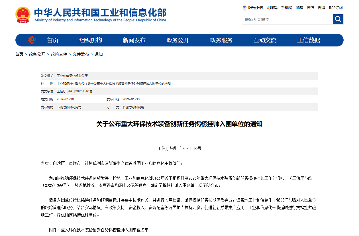 是工業(yè)和信息化部為破解生態(tài)環(huán)境領域關鍵技術裝備“卡脖子”難題組織實施的重要專項。該機制聚焦當前環(huán)保行業(yè)發(fā)展中面臨的核心技術與裝備瓶頸,旨在通過“懸榜攻關、能者揭榜”的方式,推動一批具有自主知識產權的關鍵技術與高端裝備實現(xiàn)突破,加速先進環(huán)保裝備的規(guī)模化應用與產業(yè)化發(fā)展,為我國生態(tài)文明建設與綠色低碳轉型提供堅實技術支撐。