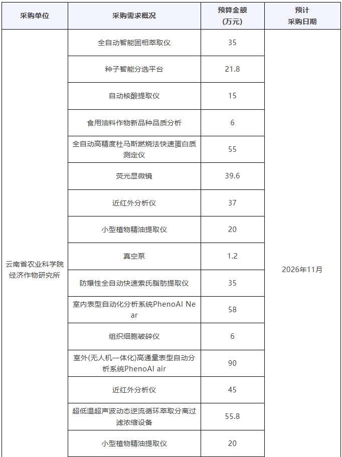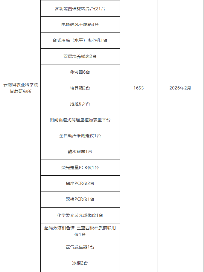 云南省農(nóng)業(yè)科學(xué)院2026年儀器采購意向匯總