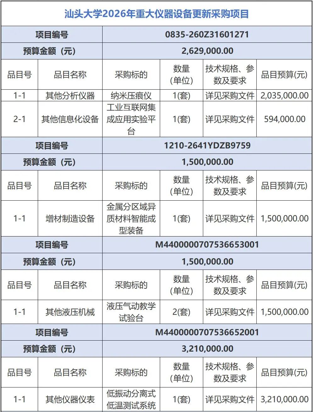 近日,汕頭大學(xué)2026年重大儀器設(shè)備更新采購(gòu)項(xiàng)目正式對(duì)外公布。該項(xiàng)目共發(fā)布6個(gè)公開(kāi)招標(biāo)文件,總預(yù)算金額超過(guò)1400萬(wàn)元。